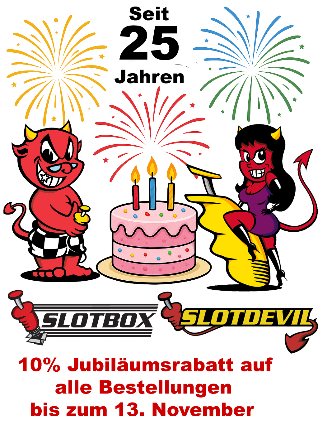 ![]() Ab dem 14.11.2025 gehen wir mindestens bis zum 31.01.2026 in die Winterpause und schließen unseren Webshop komplett. Slotdevil-Teile erhalten sie in dieser Zeit problemlos bei unseren Slotdevil Händlern.Die Slotbox ist der Werksshop von Slotdevil und führt ausschließlich Slotdevil Produkte.Die wenigen Produkte anderer Hersteller im Shop, sind Restbestände aus unserem früheren Komplettangebot und alle zu extrem reduzierten Preise im Ausverkauf!Neue VersandkostenBis € 39,99 Warenwert 4,- Versandkosten. Ab € 40,- Warenwert ist der Versand kostenlos.Lieferungen innerhalb Deutschlands. Ins Ausland liefern wir nur an gewerbliche Händler oder Weiterverarbeiter mit schriftlicher Begründung.Standardmäßig liefern wir nur nach Deutschland. Grund sind die diversen EU und nationalen Verpackungsverordnungen und Elektrogeräte-Entsorgungs-Bestimmungen (WEEE-Richtlinien). Um legal verkaufen zu können, ist ab der ersten Lieferung in jedem einzelnen EU-Land eine separate Anmeldung erforderlich. Diese Anmeldungen sind mit hohen Kosten von teilweise über 1000,- Euro jährlich für jedes einzelne EU Land verbunden, und benötigen dazu noch enormen Verwaltungsaufwand. Diese Kosten und der Aufwand sind für uns untragbar. Unsere Verkaufsverpackungen und Motoren sind daher nur in Deutschland ordnungsgemäß angemeldet und lizenziert.Besondere Bedingungen für Auslandslieferungen.Sie müssen uns schriftlich bestätigen, dass Sie als gewerblicher Händler oder Weiterverarbeiter unsere Verpackungen und Produkte, sowie die daraus resultierenden Endprodukte, in Ihrem Verkaufsland ordnungsgemäß angemeldet und lizenziert haben, und für die ordnungsgemäße Entsorgung selber verantwortlich sind.Wie sollten Rücksendungen erfolgen ->RücksendungenIn diesen Zeiten schließt der Webshop komplett. Die Versorgung des Marktes mit Slotdevil Teilen erfolgt in dieser Zeit über unsere Slotdevil Händler, für die wir extra dafür spezielle Sonderprogramme auslegen werden. Während diesen Zeiten ist der Webshop komplett geschlossen. Sie können sich weiterhin alle Artikel im Shop mit Preisen anschauen, aber nicht in den Warenkorb legen und keine Bestellung auslösen. Hellgirl + Slotdevil